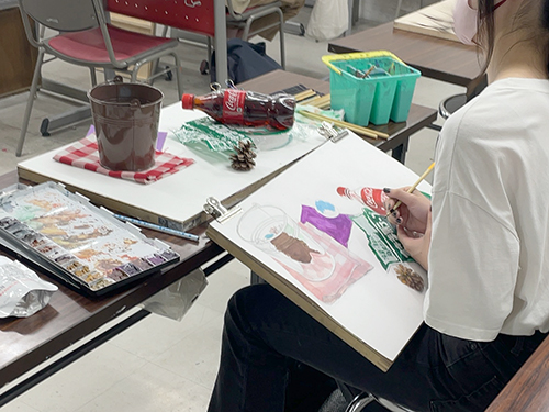 講習の内容は各クール同じですが、2つのクールを受講している生徒はモチーフを変えて制作しています。