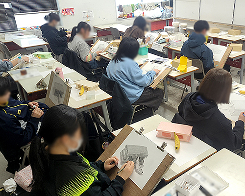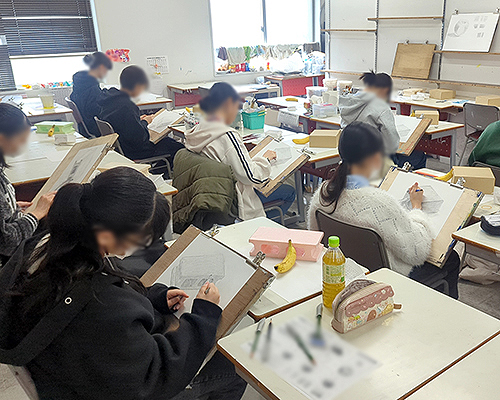 Zobiの中学生コースは札幌市内の美術系高校の受験に必要なデッサンについて、5段階のステップで学ぶ内容となっています。