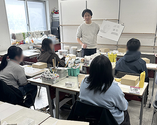 最後にその日描いた作品1点1点に細かくアドバイスしてもらう講評を受けます。