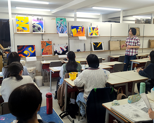 年度末の通常授業最後に来て頂いた芸大出身の大町先生が油画科の全体講評に参加してくれました。