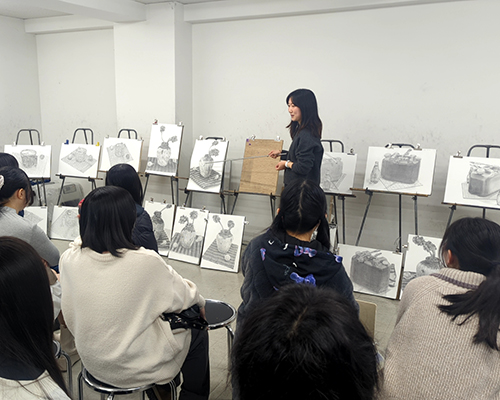 Zobiの講習会で初めて本格的なデッサンを描く生徒はデッサンについての説明を聞いて初歩的なモチーフを徐々に難しくしながら描いていきます。