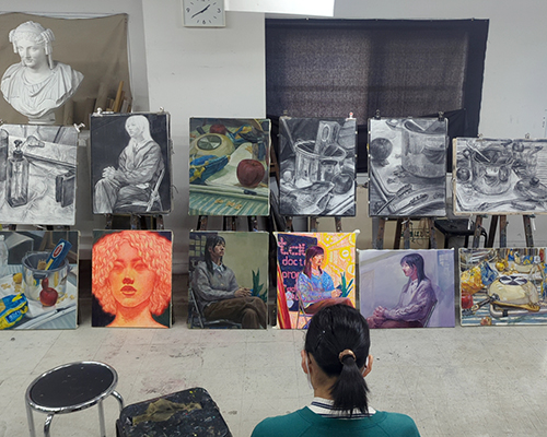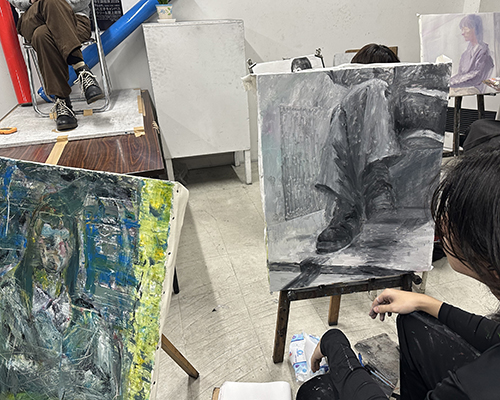 今回は昼間部と夜間部で同じ課題を同じ時間で制作し、デッサンと油絵それぞれの最終日にプレゼン講評を行う特別課題。