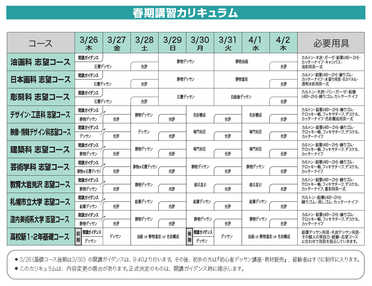 いよいよ新しい年度が始まりますが、美大受験へのスタート準備は万全ですか?これから芸大・美大を志望する皆さんにとっては、春が一番大切な時期でもあります。